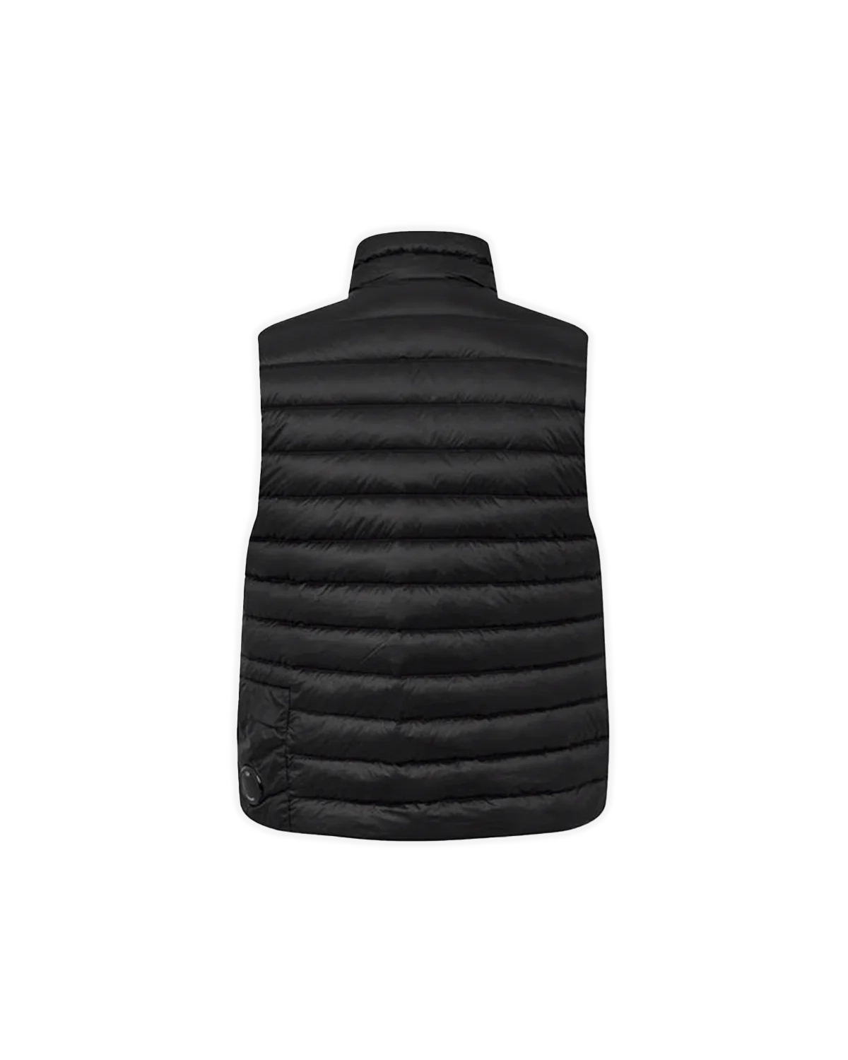 Crafted from ultra-light 7-denier nylon, this down vest combines technical performance with signature C.P. Company style. Featuring direct-injected down insulation, a two-way zip, and the iconic lens detail on the side pocket, it offers warmth without bulk. Finished in sleek black, it’s ideal for layering through transitional weather.