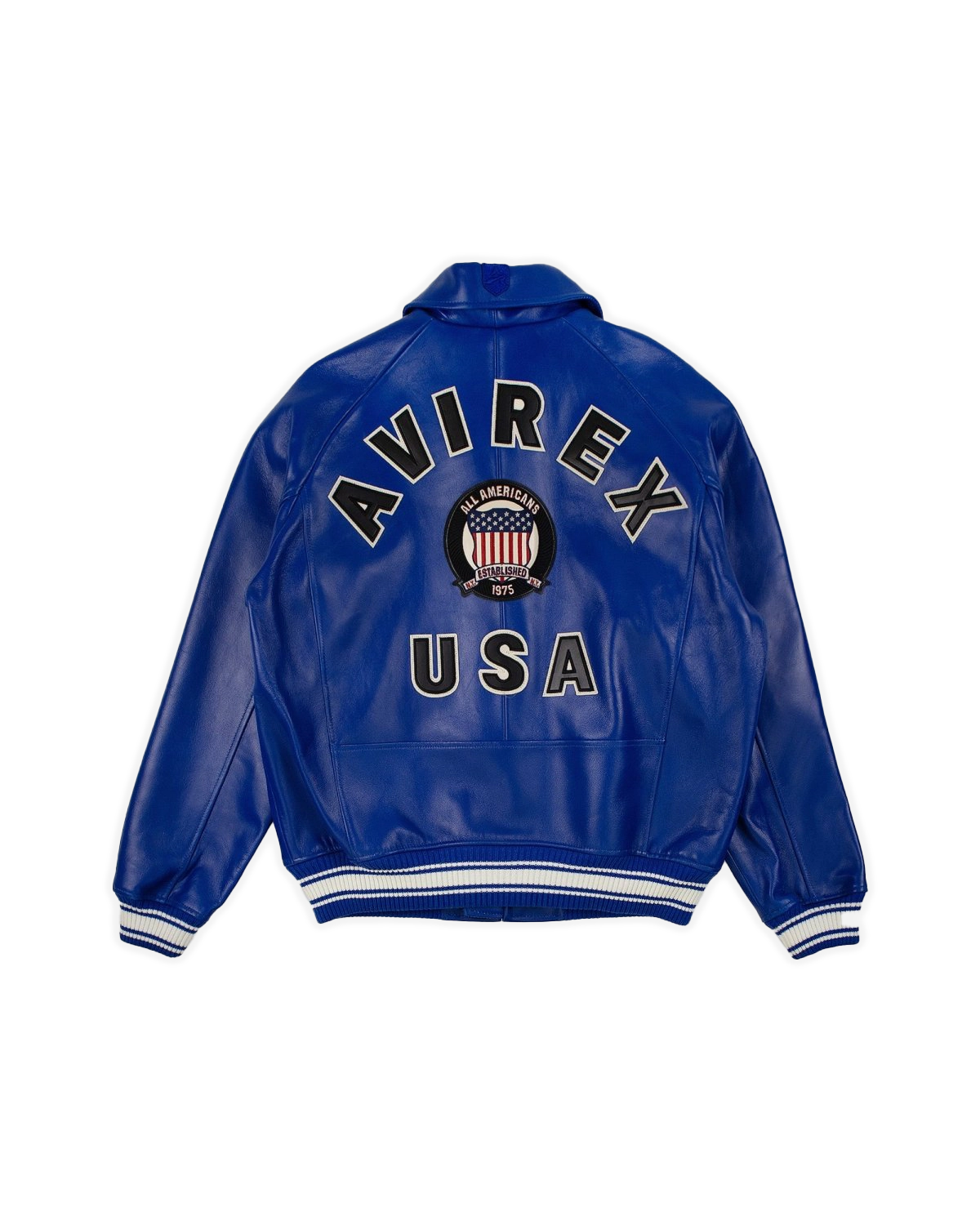 The Avirex Icon Leather Jacket in Mazarine Blue blends classic military style with modern sophistication. Crafted from premium leather, this jacket is designed for durability and timeless appeal. It features signature Avirex details like embroidered patches, a full-zip closure, ribbed cuffs, and a fitted silhouette. The rich olive green color adds a rugged yet versatile look, perfect for casual or elevated outfits. With its attention to detail and high-quality construction, this jacket is a standout piece for anyone looking to make a bold fashion statement.