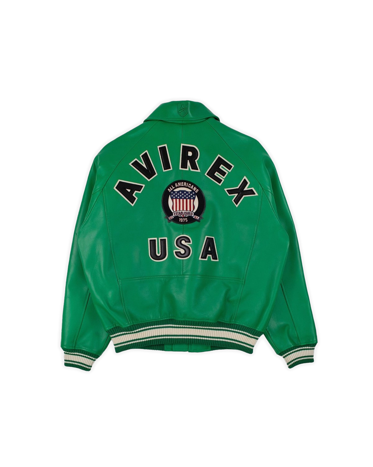 The Avirex Icon Leather Jacket in Jelly Bean blends classic military style with modern sophistication. Crafted from premium leather, this jacket is designed for durability and timeless appeal. It features signature Avirex details like embroidered patches, a full-zip closure, ribbed cuffs, and a fitted silhouette. The rich green color adds a rugged yet versatile look, perfect for casual or elevated outfits. With its attention to detail and high-quality construction, this jacket is a standout piece for anyone looking to make a bold fashion statement.