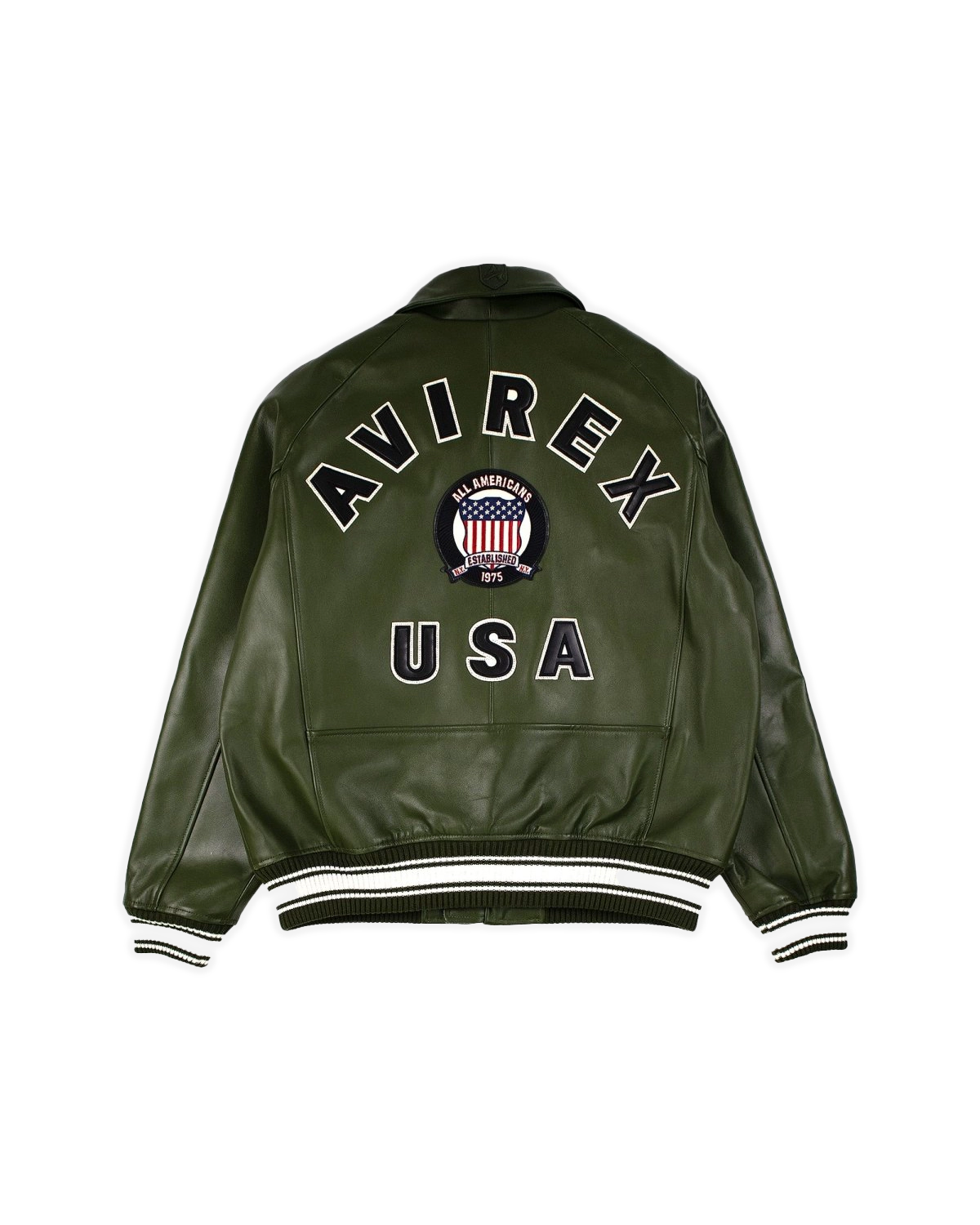 The Avirex Icon Leather Jacket in Olive Green blends classic military style with modern sophistication. Crafted from premium leather, this jacket is designed for durability and timeless appeal. It features signature Avirex details like embroidered patches, a full-zip closure, ribbed cuffs, and a fitted silhouette. The rich olive green color adds a rugged yet versatile look, perfect for casual or elevated outfits. With its attention to detail and high-quality construction, this jacket is a standout piece for anyone looking to make a bold fashion statement.