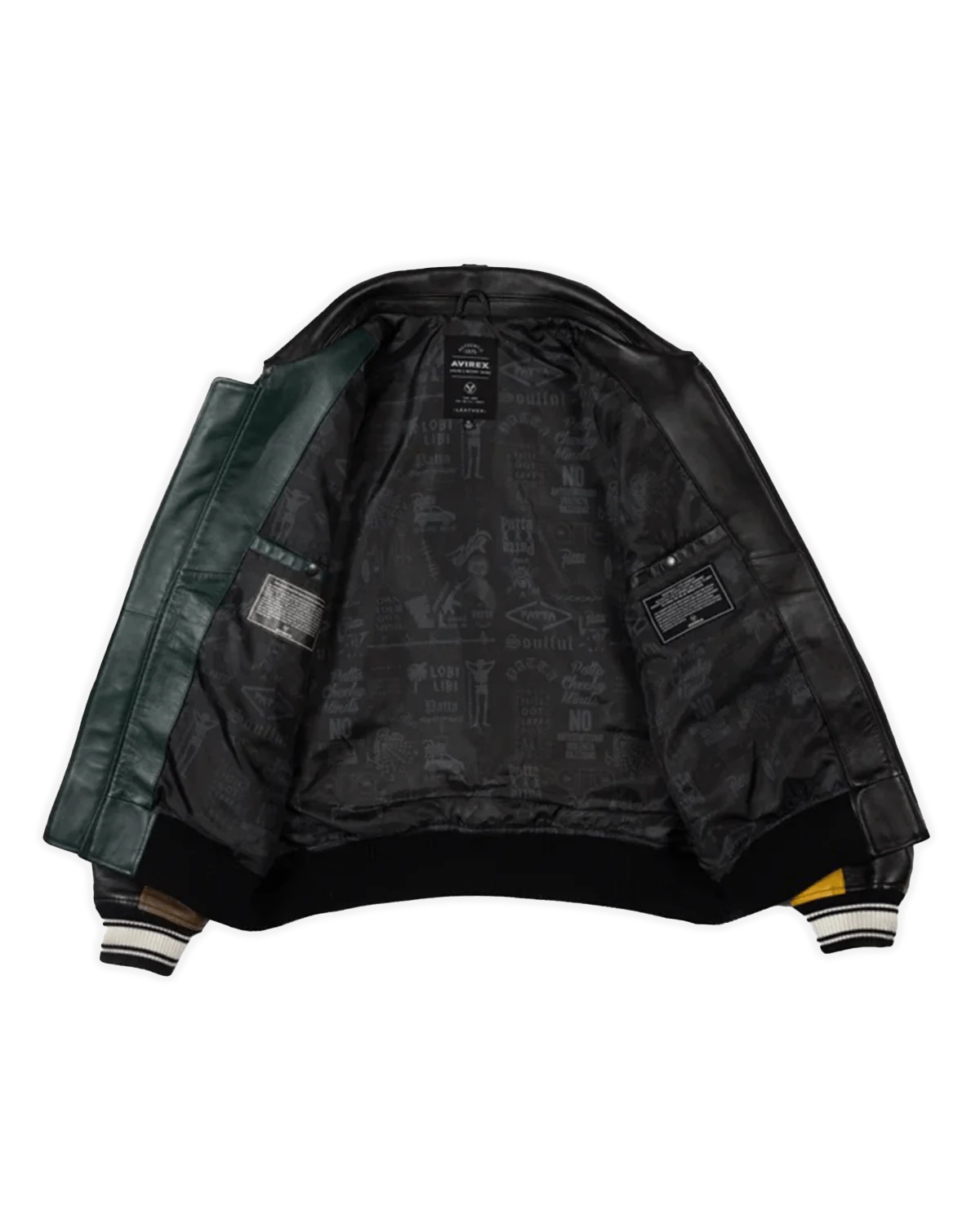 The Limited Edition Avirex x Patta Leather Jacket blends classic flight aesthetics with streetwise edge. Premium leather, bold branding, and timeless attitude.