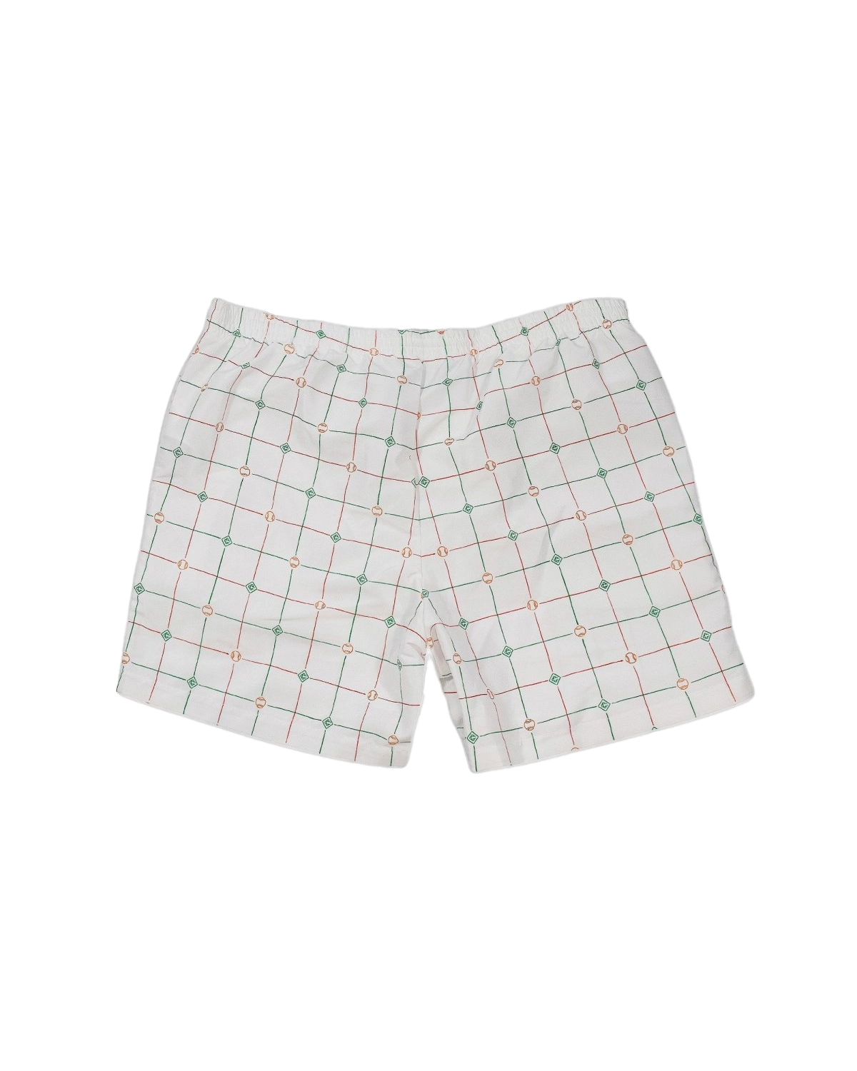 The CASABLANCA Check Printed Swim Shorts feature a bold, eye-catching check pattern that reflects the brand's signature blend of elegance and playfulness. Made from lightweight, quick-drying fabric, these swim shorts offer both comfort and performance. An elastic waistband with a drawstring ensures an adjustable fit, making them perfect for lounging poolside or beach activities while adding a stylish, refined touch to your summer wardrobe.