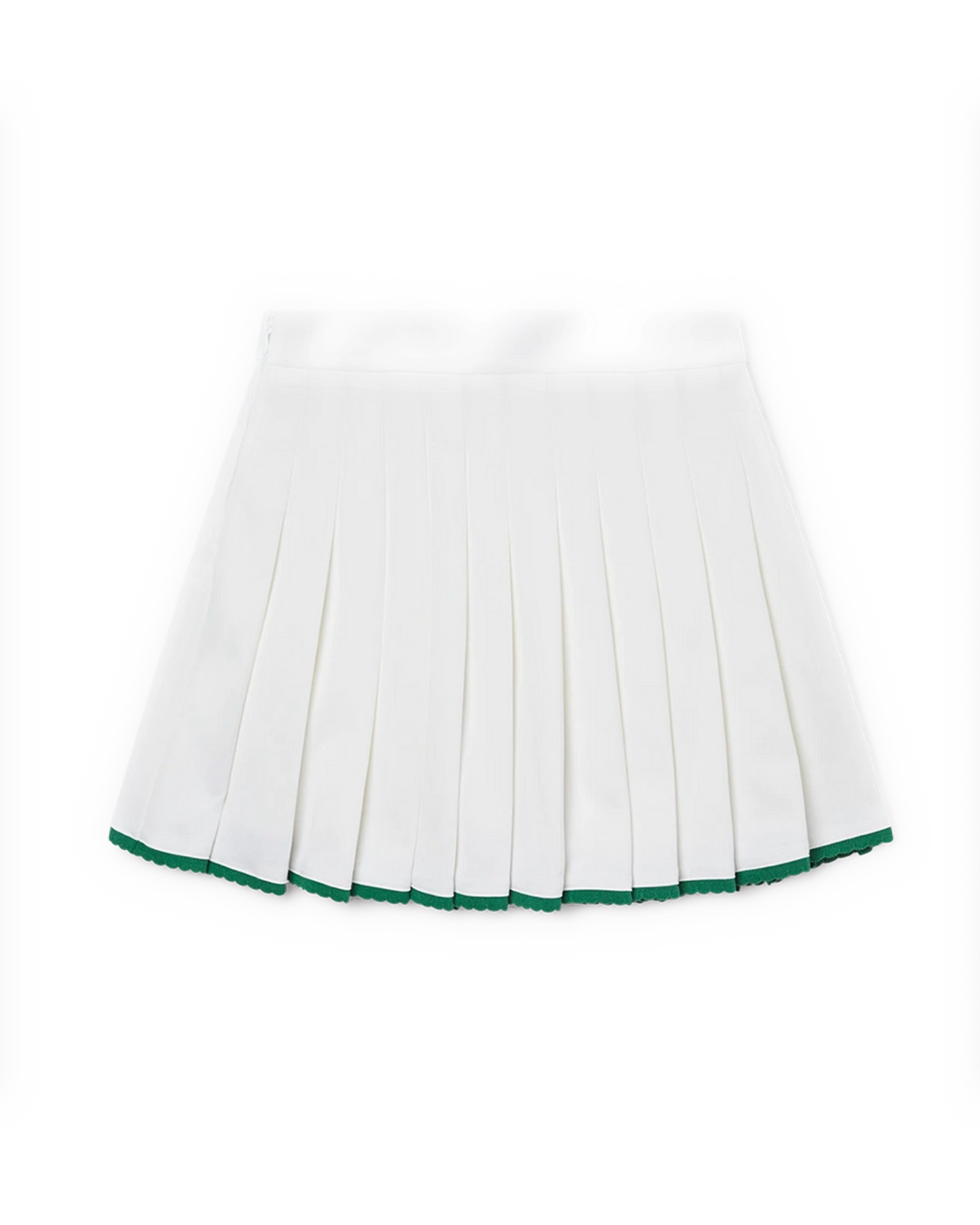 The Casablanca Scallop Edge Pleated Skirt brings a touch of elegance to any outfit with its signature pleats and unique scalloped hem. This skirt is made from high-quality silk or silk-blend fabric, offering a lightweight and flowing silhouette that moves beautifully with every step.