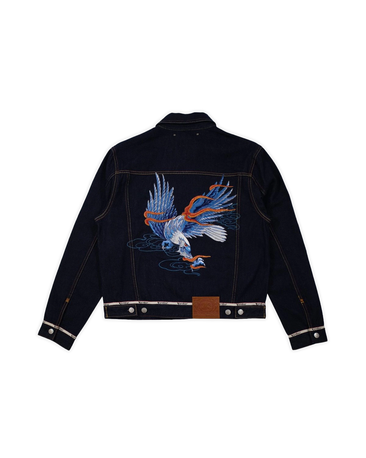 The EVISU Denim Jacket with Back Eagle Embroidery is a standout piece that blends classic denim style with bold, intricate detailing. Made from high-quality denim, this jacket features an eye-catching embroidered eagle on the back, embodying EVISU’s signature craftsmanship and Japanese heritage. With a relaxed fit and durable construction, it's perfect for adding a unique edge to any streetwear look.