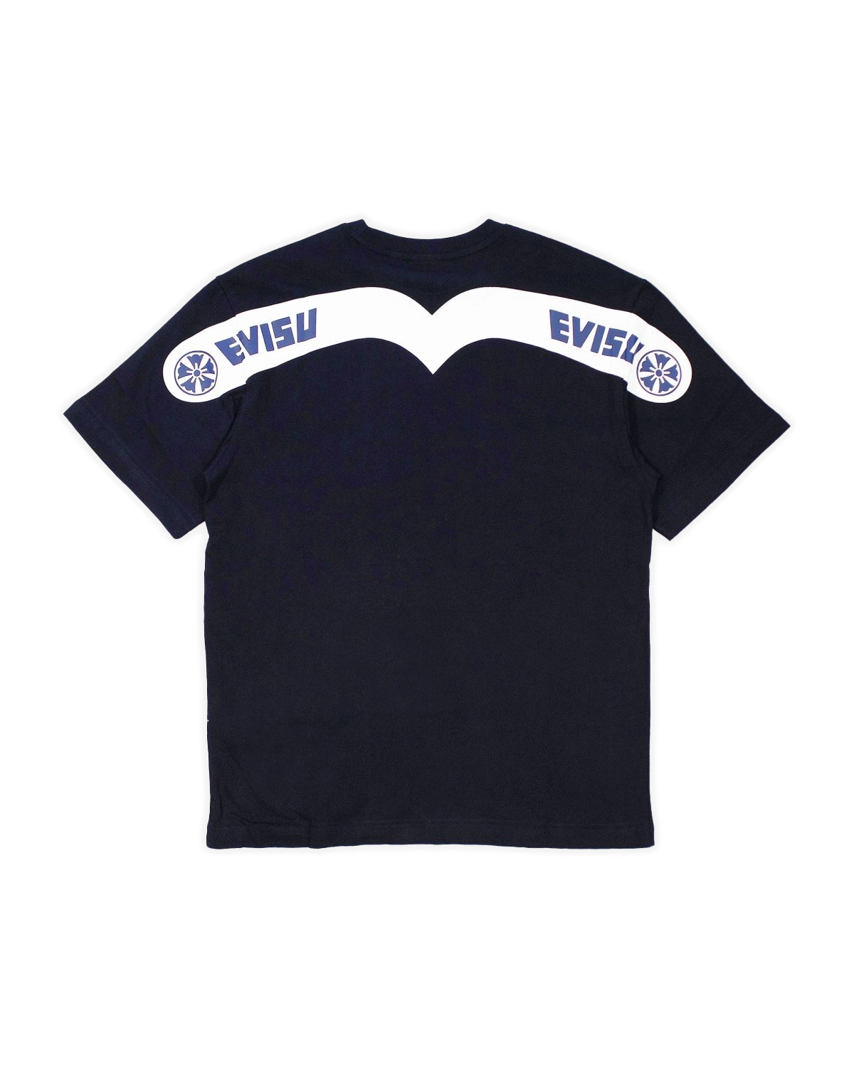 This navy-blue Evisu T-shirt features a bold chest print and bold logo on the back neck. Made from premium cotton, it's the perfect blend of comfort and style. Available exclusively at Bloc Magasin.