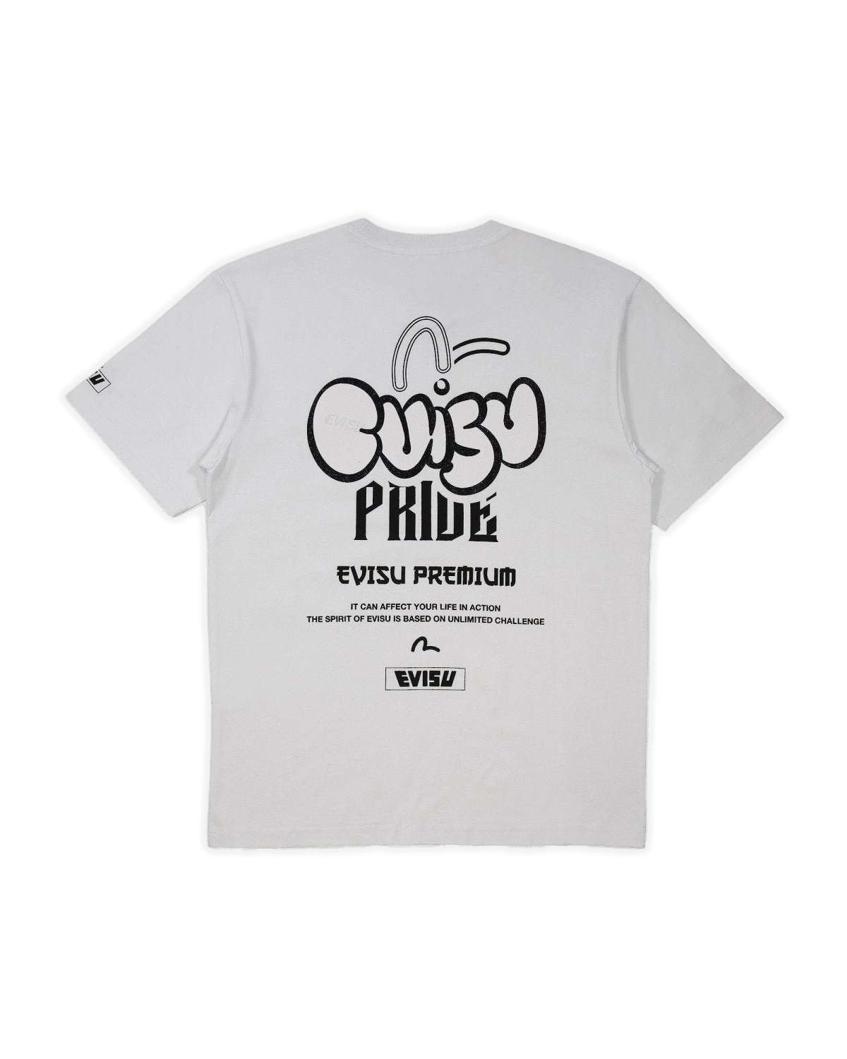 This white Evisu T-shirt features a bold chest print, a small logo on the arm and a big print on the back. Made from premium cotton, it's the perfect blend of comfort and style. Available exclusively at Bloc Magasin.