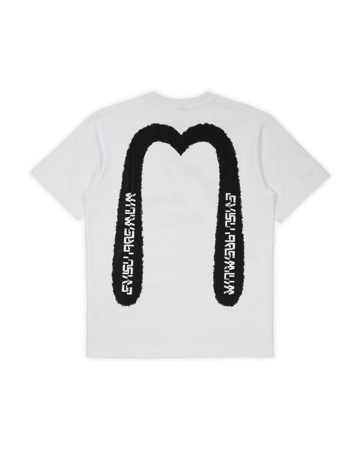 This white Evisu T-shirt features a bold chest print and bold logo on the back. Made from premium cotton, it's the perfect blend of comfort and style. Available exclusively at Bloc Magasin.