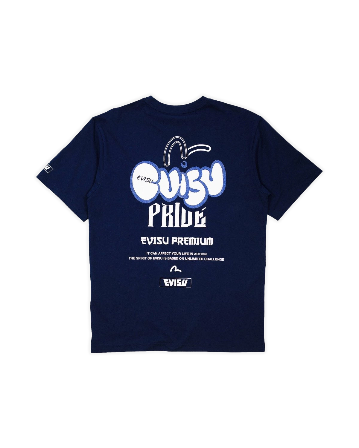 This navy-blue Evisu T-shirt features a bold chest print, a small logo on the arm and a big print on the back. Made from premium cotton, it's the perfect blend of comfort and style. Available exclusively at Bloc Magasin.
